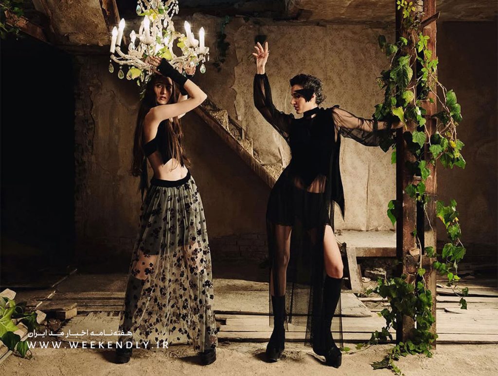 - مدل موها و میکاپ تئاتری، حالوهوایی نمایشی میسازند. اکسسوریها، با ظرافتی خاموش ظاهر میشوند تا روایت اصلی لباس، بیواسطه به چشم مخاطب بنشیند.