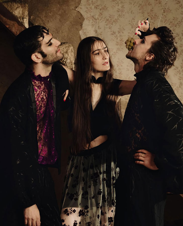 مدلها با نگاهی خاموش اما جسورانه، میان بازیگوشی و روانپریشی شاعرانه ظاهر میشوند؛ گویی بزم در دل ویرانی، جایی میان رؤیا و واقعیت دوباره جان گرفته است.